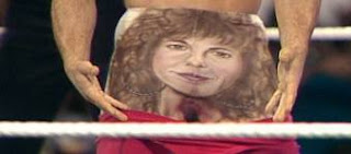 He quickly got the ball rolling with a legendary feud between him and Jake The Snake Roberts. The feud even got Roberts real life wife Cheryl Roberts involved as Rude would make passes at her. Rude even placed Mrs Roberts picture on his famous tights.